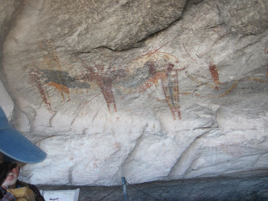 Our next stop was Seminole Canyon State Park. Visitors are not allowed to go down into the canyon without a guide, so we signed up for a guided tour (along with about 8 other people) scheduled for the following morning. A short hike down into the canyon and along the canyon floor, was followed by a climb up into two different large areas where over many, many years the river had undercut the walls of the canyon. Indigenous people lived in these caves and left behind many beautiful works of art drawn on the walls. Thanks to our two knowledgeable guides, it was a very interesting and informative tour.